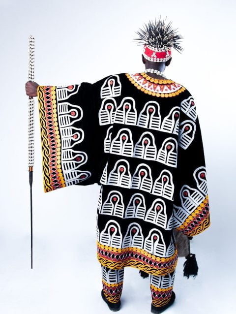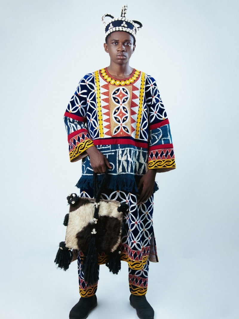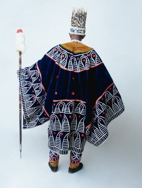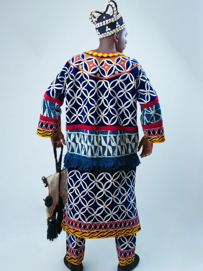 A stunning traditional attire from the Northwest region of Cameroon, often worn by royalty and dignitaries. This regal garment reflects the rich cultural heritage and intricate craftsmanship of the region.